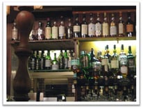 Mitten im Ort und direkt am Loch Indaal gelegen befindet sich das kleine, aber sehr gemütliche Port Charlotte Hotel. Mit seinen 10 Gästezimmern, von denen die meisten einen Blick auf das Meer bieten, der gemütlichen Lounge, dem vorzüglichen Restaurant und nicht zuletzt der gut bestückten Bar, zieht der Charme des Port Charlotte Hotel uns gleich in seinen Bann. Wir checken ein und verabreden uns wenige Minuten später in der Bar. Mit großen Augen stehe ich vor mehr als Hundert verschiedenen, nahezu alles Single Malt Abfüllungen ausschließlich von der Insel Islay. Ein Torffeuer knistert im offenen Kamin und erfüllt den Raum mit einem angenehmen Licht, behaglicher Wärme und einem süßlichen Duft nach Torf. Ich bestelle ein Pint Angus Og und Hans bringt zur Begrüßung vier Drams Black Bottle, dem vorzüglichen Blend, in dem alle sieben Whiskies der Insel vereint sind, an unseren Tisch. In der Bar können ebenfalls Snack und kleine Gerichte zum Essen bestellt werden. Tagessuppe und gegrillter Lachs sind jetzt genau das Richtige nach dieser doch langen Anreise. Endlich sind wir auf Islay und erst jetzt stellen wir fest, dass es für jeden von uns Vier die Premiere ist. Darauf einen Black Bottle. Nach dem vorzüglichen Abendessen genehmige ich mir noch einen Lagavulin 12 Jahre, die Originalabfüllung mit 58% Fassstärke. Damit lassen wir den Abend ausklingen und am nächsten Tag wartet Bruichladdich auf uns. Zu diesem Zeitpunkt konnte keiner von uns auch nur im Entferntesten erahnen, was uns am nächsten Tag bei Jim McEwan erwarten würde.