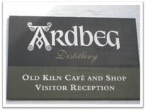 Nach einigen Meilen erreicht man einen Häuserkomplex mit großer schwarzer Aufschrift davor: Lagavulin. Der kleine Bach, der an dem Gebäude vorbei ins Meer fließt, führt klares, von Torf braun gefärbtes Wasser mit sich. Eine kleine Geschmacksprobe lässt jedoch keinen Hinweis auf Torf erkennen. Im Besucherzentrum melden wir uns für die nächste Tour an. Die Friends of Classic Malts bekommen gegen Vorlage ihres Ausweises die Tour kostenlos. Im Vorraum sind einige Abfüllungen von Lagavulin zu finden, daneben auch einige andere Flaschen von Destillerien des Großkonzerns Diageo. Kurze Zeit später beginnt die Tour mit uns Vieren und drei Amerikanern. Es beginnt wieder mit dem Mahlprozess des Malzes, welches von der Tochterfirma, den Port Ellen Maltings, geliefert wird. Neu ist die Tatsache, dass wir hier die Möglichkeit haben, die nach der Fermentation in den Wash Backs entstandene alkoholische Lösung zu probieren. Wer jemals in den Genuss eines Bamberger Rauchbieres kam kann sich vorstellen, wie das Gebräu geschmeckt hat. Nach Bier mit stark rauchiger und torfiger Note. Ungewöhnlich, aber eigentlich ganz lecker. Nach Besichtigung des Still House geht es mit einem flüchtigen Blick von außen auf das Warehouse in einen Salon, in dem man die Wahl zwischen drei verschiedenen Abfüllungen hat: Lagavulin 16J, 12J Cask Strength und die Distillers Edition. Der Salon ist schön mit antiken Möbelstücken und braunen, tiefen aber sehr bequemen Ledersesseln ausgestattet. An der gemauerten Wand hängen diverse Bilder mit Islay-Motiven. Hier kann man es sich bei einem Dram Lagavulin gut gehen und die Seele baumeln lassen. Ich bin positiv von der Tour überrascht, da ich bei einem Großkonzern wie Diageo eher eine Tour erwartet hätte, wie wir sie bei Bowmore erlebt haben. Nein, das hier war richtig gut. Wir machen bei eintretendem Regen noch schnell ein paar Fotos von der Destillerie und fahren dann weiter zu unserer dritten Station: Ardbeg.