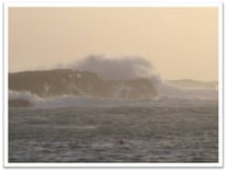 Der Wind hat mittlerweile enorm zugenommen und wir beschließen, weiter südwestlich bis zur Küste nach Portnahaven zu fahren, um das Wellenschauspiel auf dem Meer zu beobachten. Und in der Tat bietet sich draußen auf dem Meer ein tolles Naturschauspiel, bei dem sich die haushohen Wellen an den vorgelagerten Felsen brechen. Zudem kommen vereinzelt Sonnenstrahlen hindurch und tauchen das Schauspiel in ein gelbes, weiches Licht. Wir machen tolle Bilder und fahren noch etwas weiter westlich bis an den Rand der Küste. Dort kommen uns Schaumkronen entgegengeflogen und der Wind peitscht uns die Gischt ins Gesicht. Harry, der nun wahrhaftig nicht gerade ein Leichtgewicht ist, hat doch einige Schwierigkeiten, sich gegen den Wind zu stemmen, um nicht fortgeweht zu werden. Tief beeindruckt von diesen Naturgewalten und gut durchgepustet geht es dann wieder zurück ins Hotel.