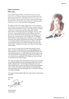 Diese im Jahr 2017 neu einegführte Rubrik im deutschen Fachmagazin "Der Whisky-Botschafter" erschien von der Ausgabe 3-17 bis 1-23 und klärt in komprimierter Form über Grundlagen von Whisky auf.
